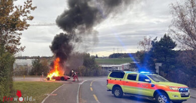 Ein Zeuge hatte Feuerwehr und Polizei alarmiert. Drei hintereinander geparkte E-Autos und ein anderes Fahrzeug brannten. Außerdem wurden zwei Mülltonnen und ein Anhänger beschädigt. Die Elektrofahrzeuge brannten vollständig aus. Die Kriminalpolizei hat die Ermittlungen aufgenommen. Brandstiftung wird nicht ausgeschlossen.