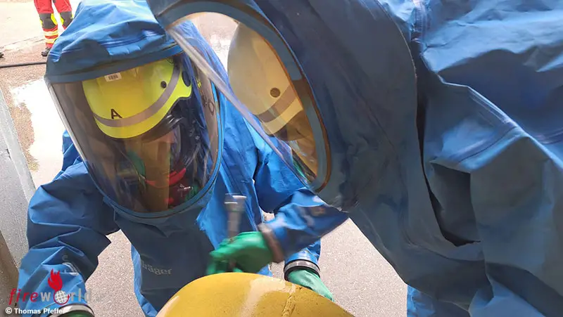 Bayern: Austritt von Chlorgas → FF Waging am See im Gefahrgut-Übungseinsatz mit der „GAMS“ bei der Werkfeuerwehr Infraserv