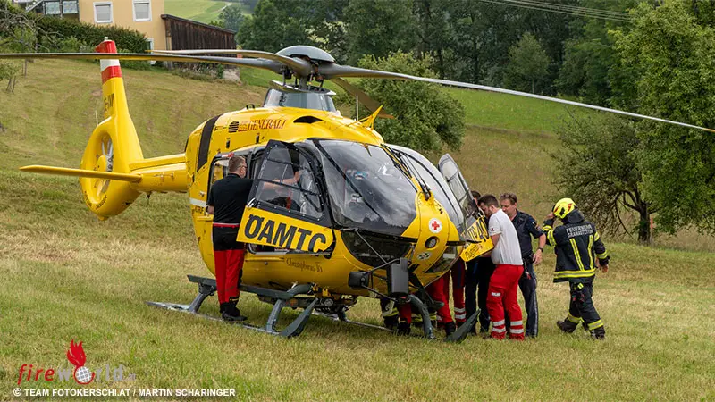 Dabei berührte der 53-Jährigen unabsichtlich einen spannungsführenden Leiter der Stromleitung. Sein Kollege erkannte die Gefahr sofort und rief den Notruf. Unterdessen versuchte der 53-Jährige den Auffanggurt zu öffnen, um sich von dem spannungsführenden Leiter entfernen zu können. Dabei kippte dieser mit dem Oberkörper nach hinten wurde jedoch kopfüber vom Auffanggurt gehalten. Sein Kollege eilte dem Verunglückten sofort, mit Unterstützung eines Anrainers, zu Hilfe. Sie stiegen über eine Leiter zu dem Betroffenen hinauf und retteten diesen durch Abseilen und leisteten am Boden sofort Erste Hilfe. Kurz darauf trafen Freiwillige Feuerwehr, die Rettung und der Notarzthubschrauber ein und übernahmen die Versorgung des Verletzten, er war bei Bewusstsein und ansprechbar. Der 53-Jährige wurde anschließend mit dem Rettungshubschrauber in ein Krankenhaus geflogen. Der Verletzungsgrad ist derzeit nicht bekannt.