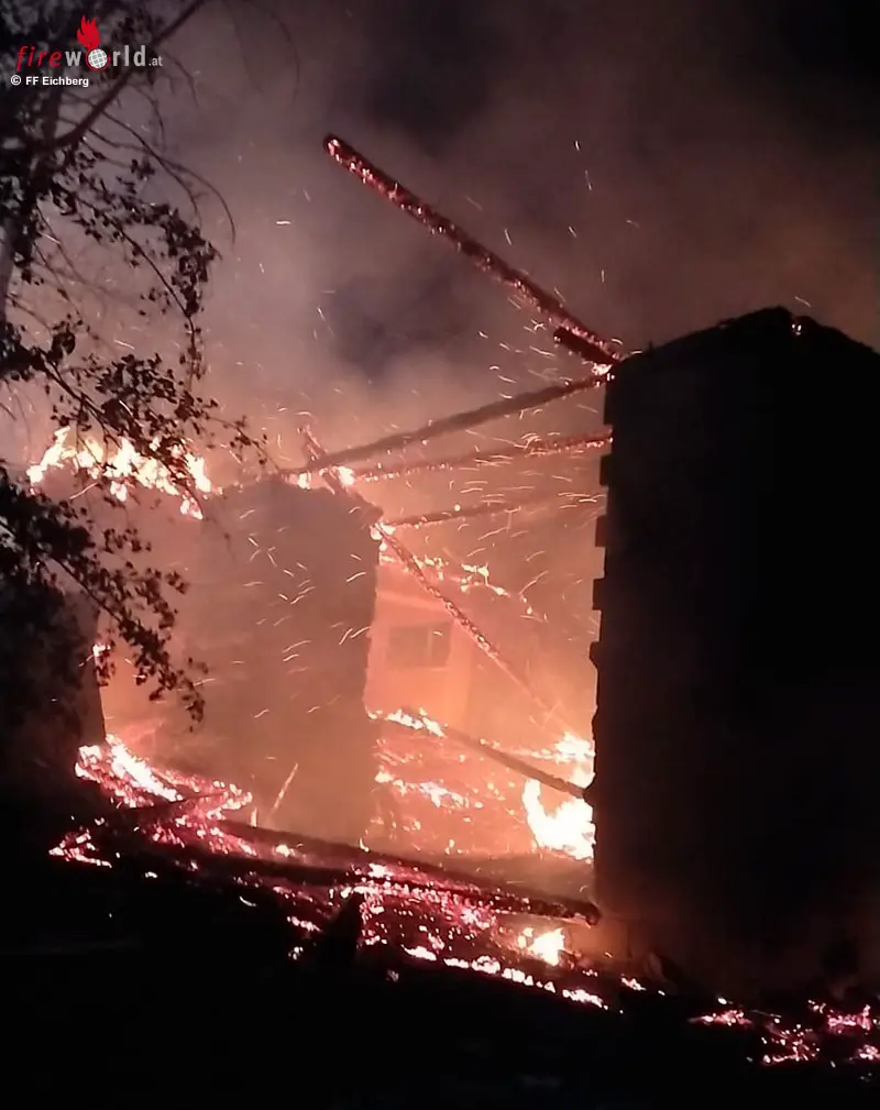 Stmk: Vier Feuerwehren bekämpfen Wirtschaftsgebäude-Großbrand in Vorau