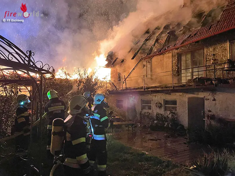 Die Feuermauern zum – in Vollbrand stehenden – Wirtschaftsgebäude wurden erfolgreich mit Löschwasser beaufschlagt, um ein weiters Übergreifen der Flammen verhindern zu können. „Die Hitzeentwicklung des Vollbrandes war enorm – das Wohnhaus konnte mit Haaresbreite gehalten werden!“, bilanzierte HBI Günter Holzer – Kommandant der FF Vorau.