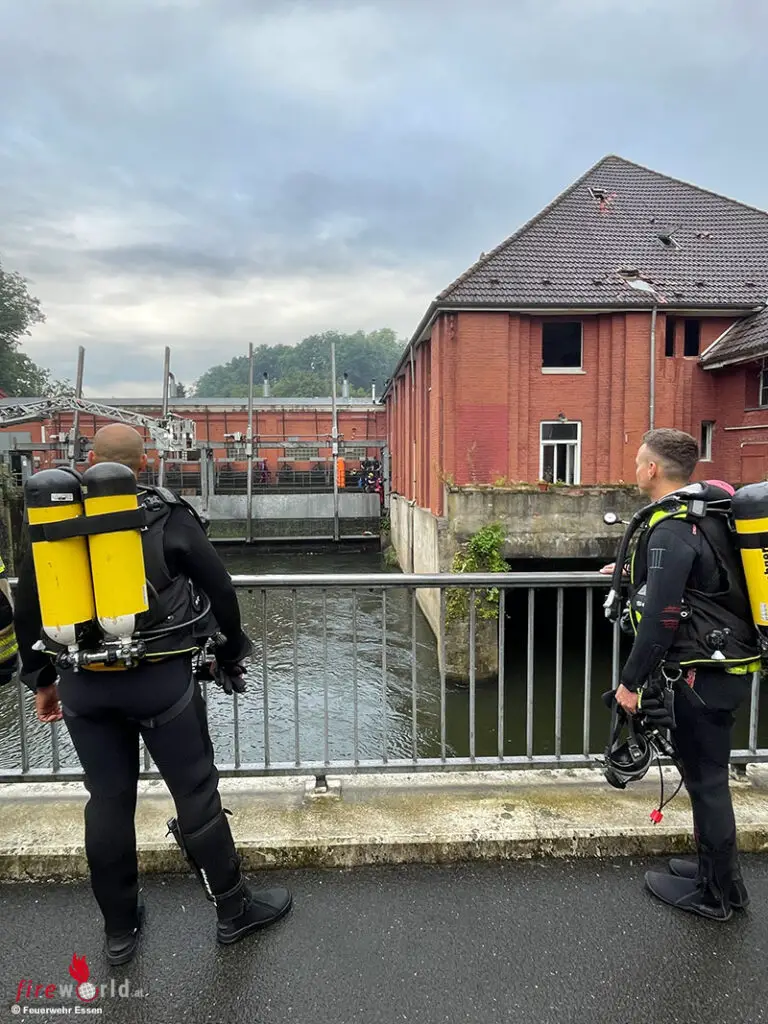 ESSEN (DEUTSCHLAND): Am 10. Juli 2024 meldeten Mitarbeiter einer Gerüstbaufirma, die an den Anlagen des Spillenburger Wehrs tätig waren, um 07.37 Uhr der Feuerwehr, dass eine hilflose Person in der Ruhr treibt. Sofort wurden zahlreiche Einsatzkräfte, unter anderem Rettungstaucher und die Höhenrettungsgruppe, nach Essen-Steele an die Westfalenstraße zum Spillenburger Wehr entsandt.