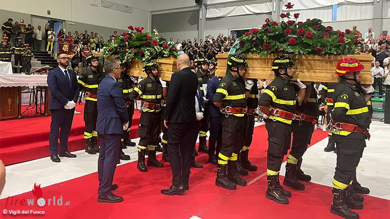 Zwei mutige Feuerwehrleute, Giuseppe Martino und Nicola Lasalata, beide 45 Jahre alt, aus Matera, verloren ihr Leben, als sie versuchten, eine Familie zu retten, die in einem brennenden Bauernhaus in Nova Siri, Italien, eingeschlossen war. Die Feuerwehrleute stürzten in eine Schlucht in der Nähe des Hauses in der Gegend von Cozzuolo, während sie gegen starke Hitze und dichten Rauch kämpften.