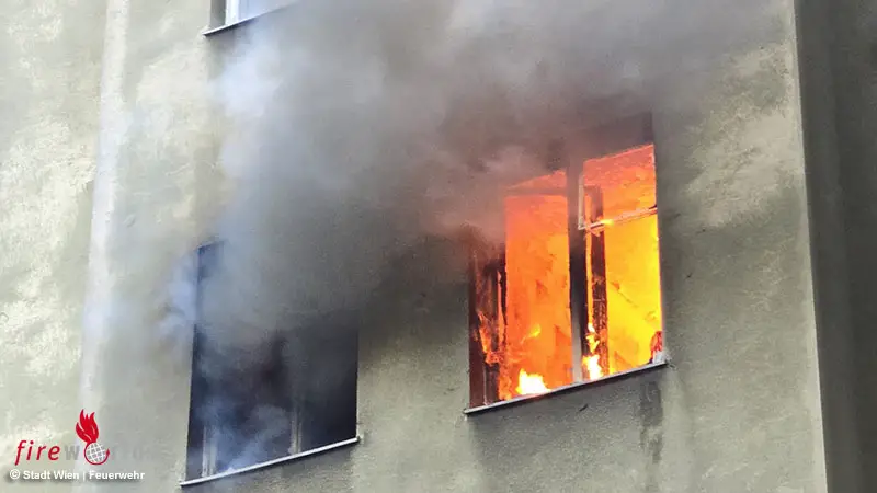 Als die um 20.15 Uhr alarmierten Kräfte der Berufsfeuerwehr Wien eintrafen, schlugen Flammen aus den Fenstern, die Wohnung im 2.Stock stand in Vollbrand. Sofort drang ein Feuerwehrtrupp unter Atemschutz mit einer Löschleitung über das Stiegenhaus zur Brandwohnung vor. Mit einer zweiten Löschleitung wurde von außen über eine Drehleiter gegen das Feuer gekämpft.