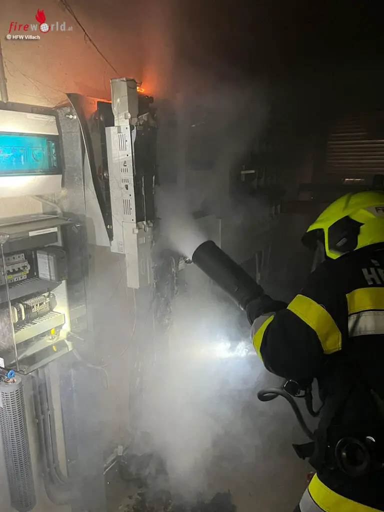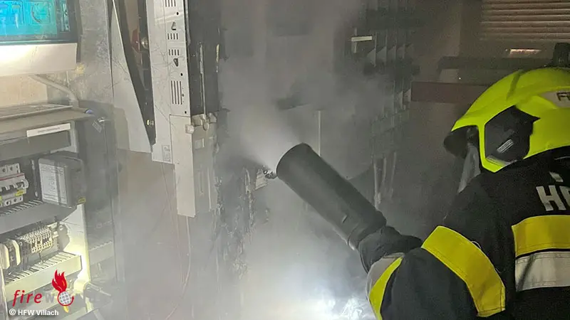 Parallel zur Vorbereitung des Löschangriffes verließen die Mieter bereits das Gebäude. Das Stiegenhaus wurde unverzüglich kontrolliert und mittels Hochleistungslüfter rauchfrei gehalten, so Einsatzleiter HBI Harald Geissler, Kommandant der Hauptfeuerwache Villach. Unter schwerem Atemschutz konnte der Brand im Traforaum mittels Kohlensäurelöscher rasch gelöscht werden. Gemeinsam mit dem rasch eingetroffenen Störungsdienst der KELAG wurde der Raum kontrolliert und rauchfrei gemacht.