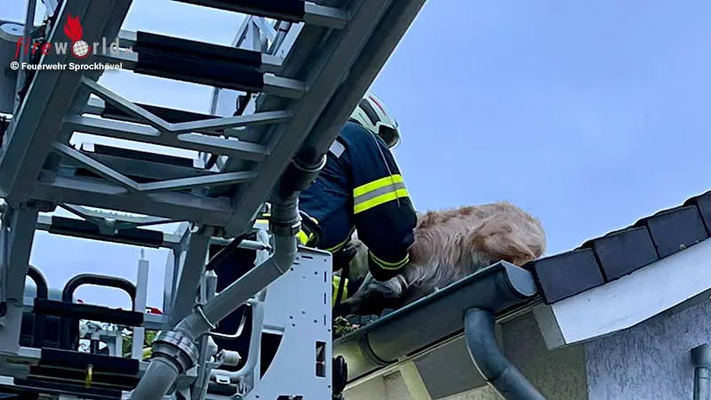 D: Feuerwehr in Sprockhövel rettet Hund aus Dachrinne
