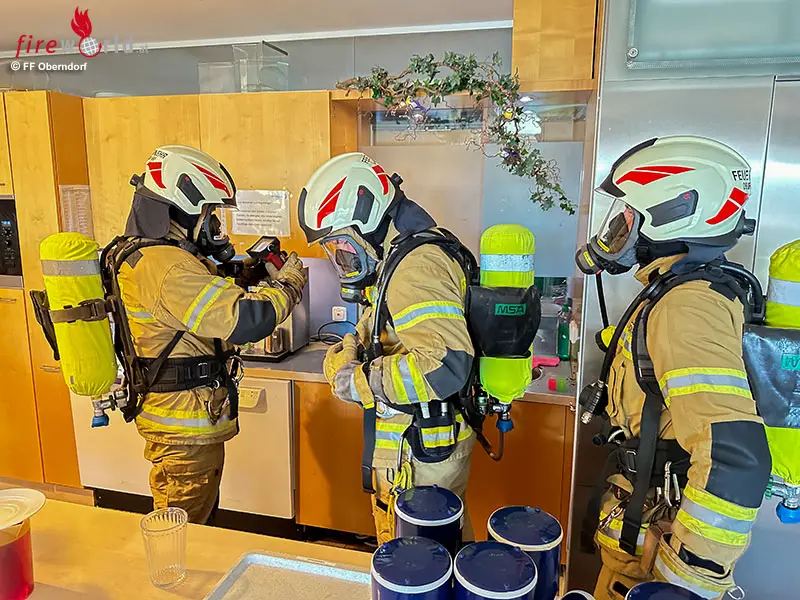 Nach Abschluss des Einsatzes beim BORG Oberndorf wurde eine Endkontrolle mittels Mehrgasmessgerät im Seniorenwohnheim durchgeführt und die Belüftungsmaßnahmen abgeschlossen, sowie die restliche Mannschaft aufgenommen.