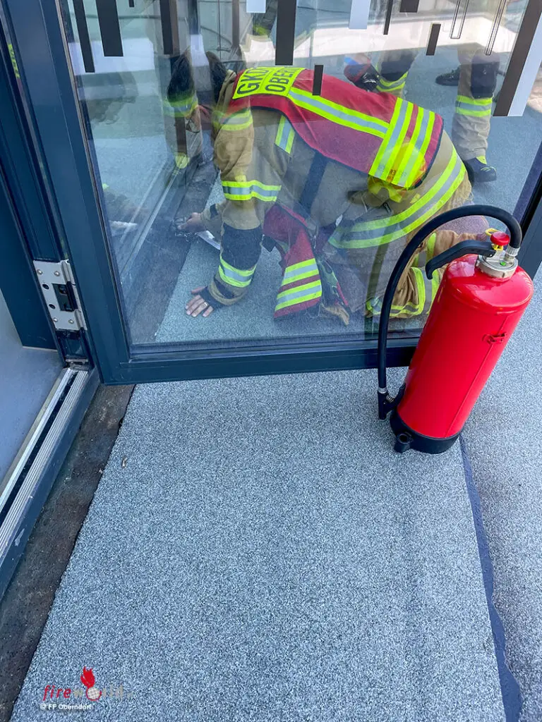 Der Brandbereich wurde durch einen Atemschutztrupp kontrolliert und die Maschine ins Freie bracht. Die Brandursache wurde durch zwei Streifen der Polizei Oberndorf inkl. Brandermittler festgestellt. Mittels zweier Überdrucklüfter wurde gerade die Verrauchung beseitigt, als abermals die LAWZ Salzburg über Funk um 13.49 Uhr einen neuen Einsatz meldete: Auslösung der Brandmeldeanlage im BORG Oberndorf.