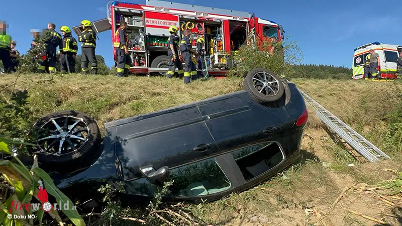 Nö: Pkw überschlägt sich bei Loosdorf in den Graben → 2-fache Personenrettung