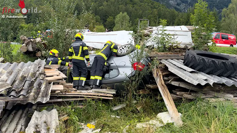 Nach bisherigen Erkenntnissen kam eine Fahrzeuglenkerin, die in Fahrtrichtung von Gmunden Richtung Bad Ischl unterwegs war, aus bislang ungeklärter Ursache von der Fahrbahn ab. Das Fahrzeug stürzte daraufhin über eine etwa 1,50 Meter hohe Böschung und überschlug sich, bevor es seitlich auf einem Holzstoß zum Liegen kam. Die Einsatzkräfte der Feuerwehr wurden umgehend alarmiert und konnten die im Fahrzeug eingeschlossene Person rasch befreien.