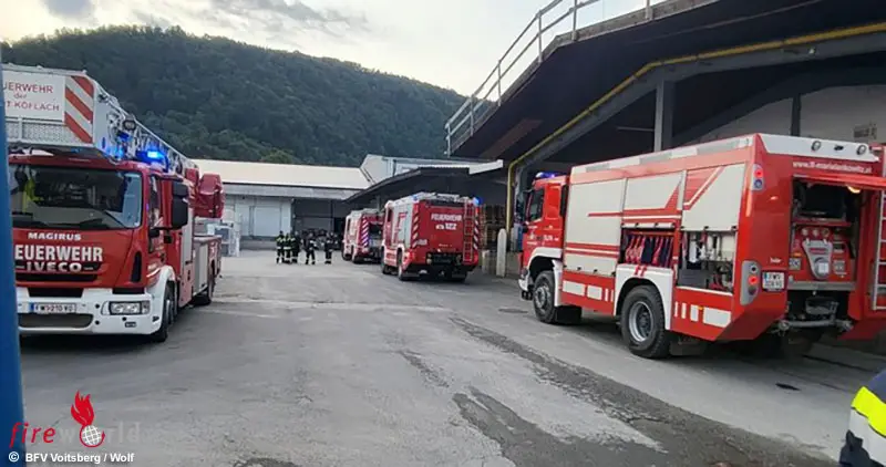 KÖFLACH (STMK): Am 19. August 2024 um 18:32 heulten die Sirenen für die Feuerwehren Stoelzle Oberglas, Köflach, Piber und Maria Lankowitz. Der Einsatzbefehl lautete „Maschinenbrand in einem Industriebetrieb in Köflach. Aufgrund des Alarmstichworts wurde auch das Einsatzunterstützungsfahrzeug des BFV Voitsberg aus Mooskirchen mit alarmiert.