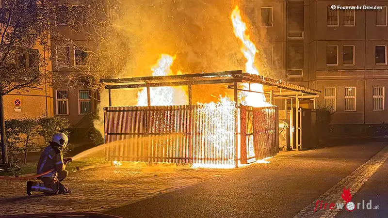D: Brand auf Mülltonnenstellplatz in Dresden