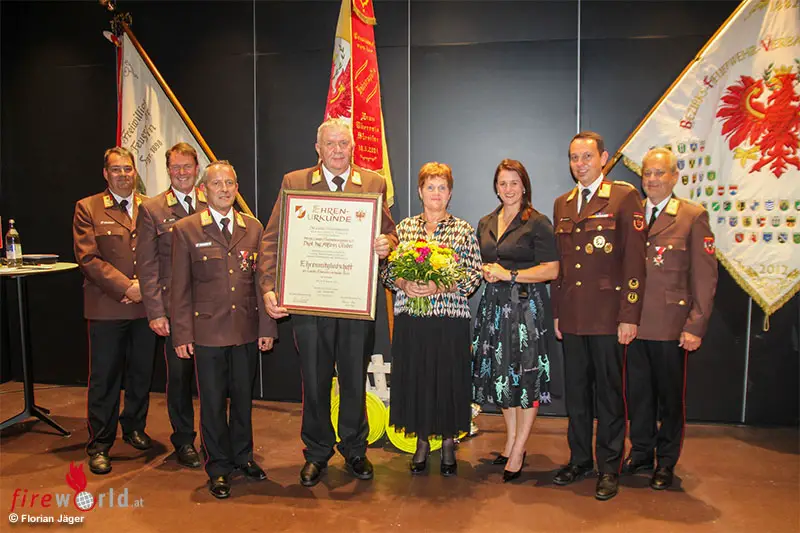 - Landes-Feuerwehrkommandant Jakob Unterladstätter: Mit der Ehrenmitgliedschaft für Landes-Feuerwehrinspektor außer Dienst Dipl. Ing. Alfons Gruber bedanken sich die Tiroler Feuerwehren für seine herausragenden Verdienste