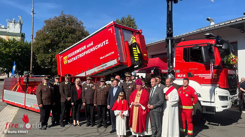 JENNERSDORF (BGLD): Am Sonntag, 22. September 2024, wurde in Jennersdorf im Rahmen eines feierlichen Festaktes das WLF-K (Wechselladerfahrzeug mit Kran) in den Dienst gestellt. Dieses Fahrzeug ist somit das zweite, das im Bezirk Jennersdorf vor allem im Katastrophendienst verwendet werden. Beide Wechselladerfahrzeuge des Bezirkes Jennersdorf waren in dieser Woche in den Katastrophengebieten rund um Tulln im Einsatz.