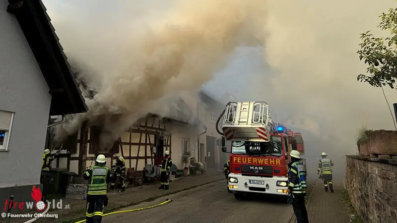 OFFENBURG (DEUTSCHLAND): Kurz vor 18.00 Uhr des 28. September 2024 meldete ein Zeuge über Notruf eine starke Rauchentwicklung aus einem Fachwerkhaus in der Bühler Straße in Offenburg. Die Feuerwehr bekämpfte in weiterer Folge mit einem Großaufgebot entsprechend dem Alarmalgorithmus „2. Alarm“ das Schadenfeuer im Erdgeschoss.