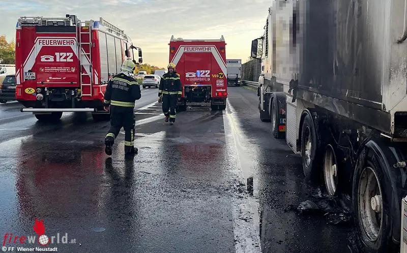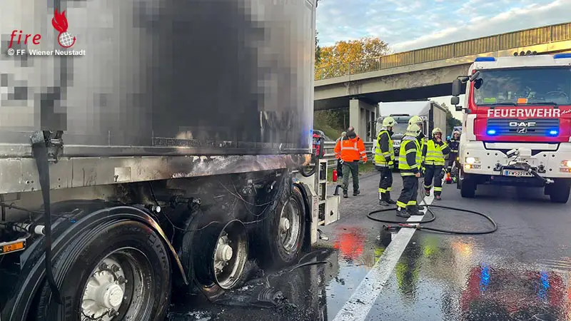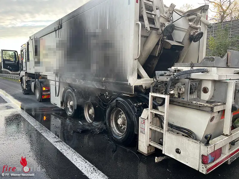 WIENER NEUSTADT (NÖ): Geistesgegenwärtig reagierte der Fahrer eines Kanalspülwagens am Montagmorgen, 30. September 2024, auf der Südautobahn bei Wiener Neustadt, als er das Wasser seines Tanks nutzte, um den Entstehungsbrand an einem seitlich abgestellten Lkw einzudämmen. So wurde zweifellos der Vollbrand des Lkws verhindert und die Feuerwehr musste nur noch Nachlöscharbeiten durchführen.