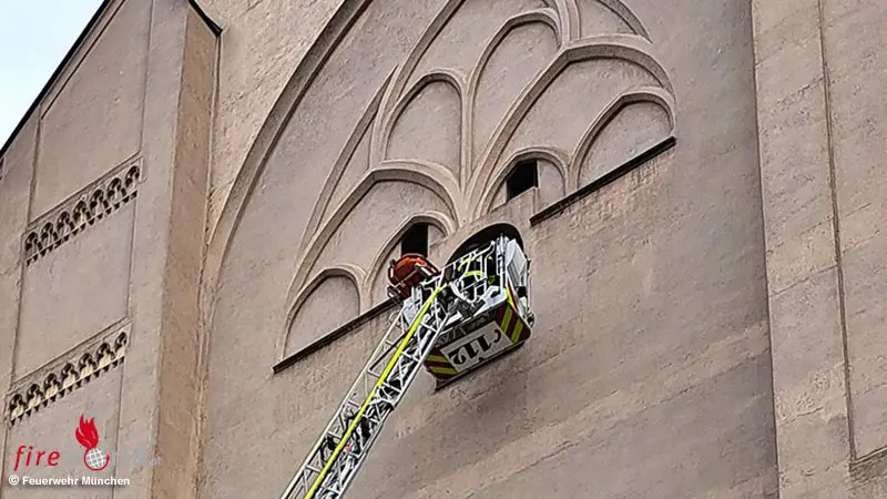 Aufgrund von Kreislaufproblemen war ein 66-jähriger Mann nicht mehr in der Lage, die unzähligen Stufen des Aussichtsturms von Münchens ältester Pfarrkirche wieder hinabzusteigen. Einsatzkräfte der Feuerwehr München und die Besatzung eines Rettungswagens trugen den Herrn mehrere Stockwerke im Turm nach unten. An einem dafür vorgesehenen Fenster wurde er dann in einer Schleifkorbtrage mithilfe der Drehleiter heruntergehoben.