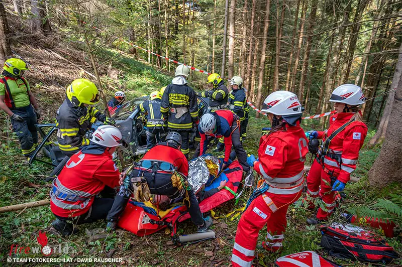 Oö: Pkw-Absturz und interner Notfall als Übungsthema in Spital am Pyhrn
