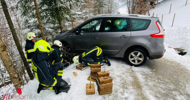 Lage war nun ein Fahrzeug, das von der Fahrbahn abgekommen, sich bei einer Feldzufahrt überschlagen hat und am Dach liegen geblieben ist. Die verunfallte schwerverletzte Person konnte zügig aus dem Fahrzeug befreit werden und es konnte mit der weiteren Betreuung begonnen bzw. Übergabe an den Rettungsdienst vorbereitet werden.
