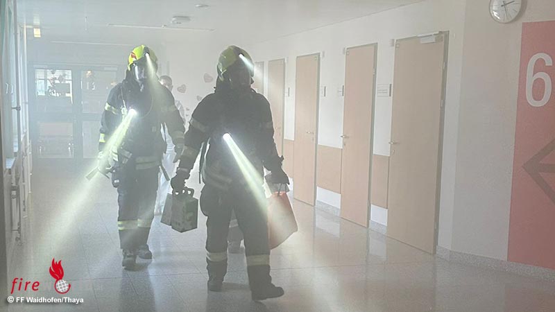 Nö: Sieben Waidhofener Feuerwehren übten im Landesklinikum Waidhofen an der Thaya