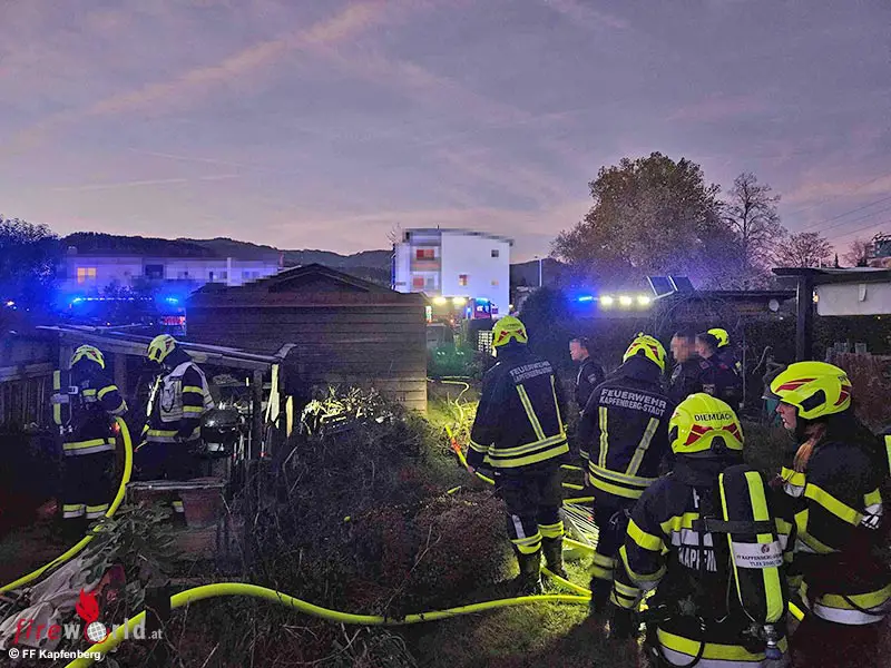 KAPFENBERG (STMK): Um 17:00 Uhr des 2. November 2024 wurden die Feuerwehren Kapfenberg-Stadt, Kapfenberg-Diemlach und Kapfenberg-Hafendorf mit dem Stichwort „Zimmerbrand“ zum Brand einer Gartenhütte nach Walfersam alarmiert.