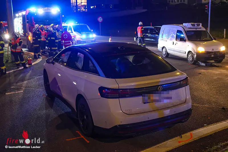 Entgegen der ersten Meldung war zum Glück niemand in den beiden Unfallfahrzeugen eingeklemmt oder eingeschlossen. Die Feuerwehr stellte den Brandschutz insbesondere beim beteiligten Elektroauto sicher und führte in weiterer Folge die Aufräumarbeiten durch.