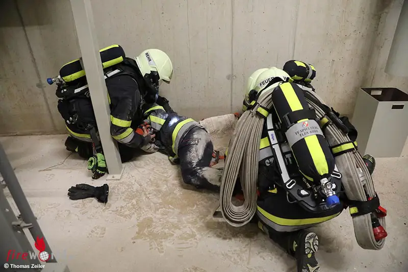 Mittels des schweren Atemschutzes konnten die vermisste Person aus den Hallen binnen weniger Minuten durch die einzelnen Atemschutztrupps gerettet werden. Zusätzlich wurde noch die Wasserversorgung für die Wasserwerfer C und HD Rohre durch eine Zubringleitung sichergestellt.