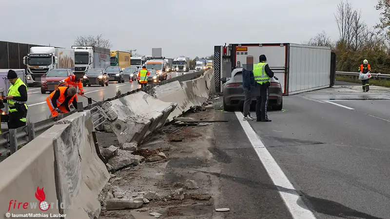 Das Sattelkraftfahrzeug des ungarischen Lenkers geriet ins Schleudern, fuhr vom rechten auf den linken Fahrstreifen und frontal gegen die dortige Betonmittelleitwand auf. Durch die Anprallwucht wurde das Sattelkraftfahrzeug in die Luft geschleudert und kam auf der Beifahrerseite, über die gesamte Fahrbahn erstreckt, zum Liegen.