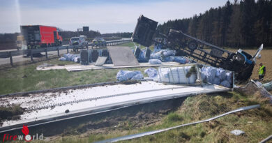 Der Pkw kam ins Schleudern, geriet auf die Gegenfahrbahn und kam rechts von der Fahrbahn ab. Dort stieß er gegen ein Betonsockel und kippte auf die Seite. Das Auto kam in der Einfahrt eines Wohnhauses in Unterglainach zum Stillstand. Der 53-Jährige wurde unter dem Fahrzeug eingeklemmt. Ersthelfer konnten den Mann befreien und alarmierten die Einsatzkräfte.