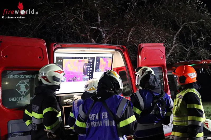 In der Zwischenzeit begann die Feuerwehr Sparberegg mittels Drohne die Personensuche im Waldgebiet. Nach dem Auffinden von Personen im Dickicht wurde die Stelle ausgeleuchtet. Freie Kräfte machten sich gemeinsam mit Feuerwehrsanitätern und Wärmebildkamera auf den Weg zu den angezeigten Stellen. Die gefundenen Personen mussten teilweise mittels Korbtrage zum SAN-Platz gebracht werden, wo sie vom Feuerwehrarzt und Feuerwehrsanitätern erstversorgt wurden.