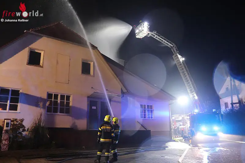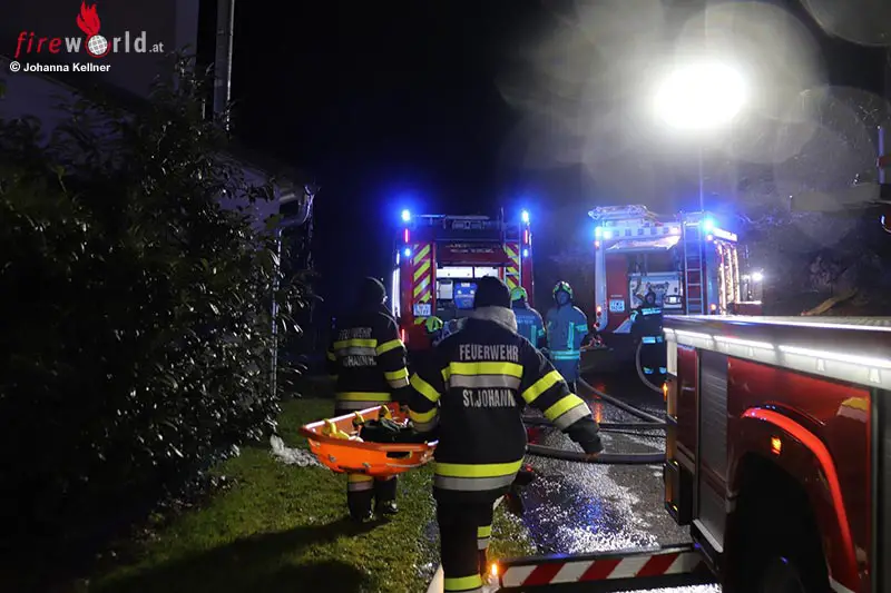 Aufgrund des Ausmaßes wurden um 17:00 Uhr die Feuerwehren des Abschnitts II alarmiert. Weiters wurden die Feuerwehr Hirnsdorf, das HLF4 und die DLK Hartberg sowie die Feuerwehr Sparberegg mit Drohne angefordert. Die Feuerwehr St. Johann b. Herberstein begann nach dem Eintreffen mit dem ersten Löschangriff und der Personensuche im Gebäude unter schwerem Atemschutz und konnte die erste Person aus dem Gefahrenbereich bringen.