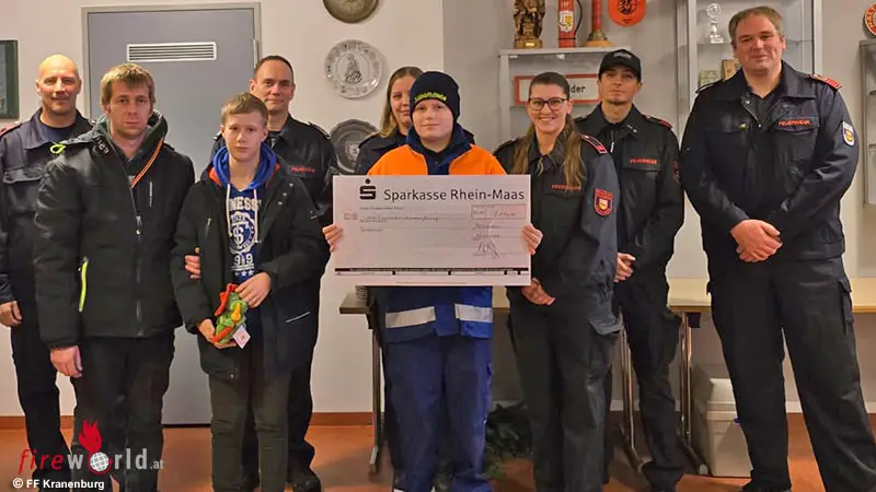 KRANENBURG (DEUTSCHLAND): Am Montagabend, den 2. Dezember 2024, überreichte die Jugendfeuerwehr Kranenburg einen Spendenscheck über 2.150 Euro an Jan Luca, dem 13-jährigen Mitglied der Jugendfeuerwehr Kleve, den eine schwere Krebserkrankung schwer beeinträchtigt. Hierdurch steht seine Familie vor großen Herausforderungen, wie dem barrierefreien Umbau ihres Zuhauses.