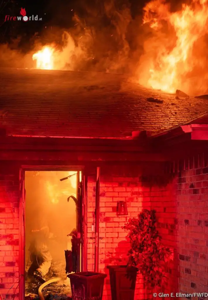 USA: Feuerwehr Fort Worth bekämpft Wohnhausbrand in Benbrook