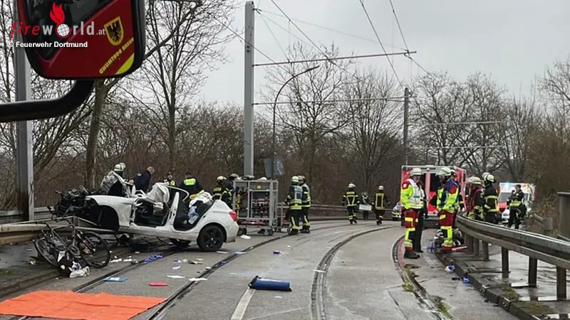 D: Zwei Eingeklemmte (18, 21) in Unfallauto sowie erfasster Radfahrer (61) in Dortmund