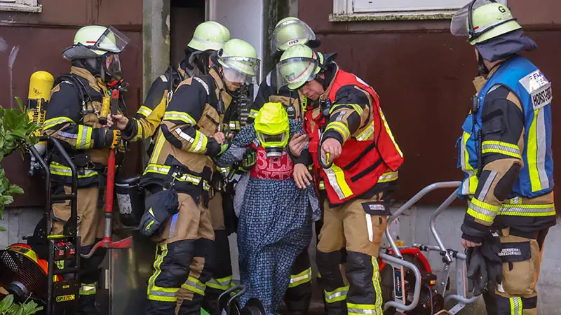 Aufgrund der Vielzahl der betroffenen Personen alarmierte die Feuerwehr zusätzliche Rettungsmittel sowie einen Bus der Ruhrbahn zur Einsatzstelle, welcher als vorübergehende Unterbringung diente. Auf dem Parkplatz eines nahe gelegenen Supermarktes wurde ein Sammelplatz für die Rettungsmittel eingerichtet. Der Leitende Notarzt sichtete insgesamt 48 Personen, von denen drei leicht verletzt mit Rauchgasvergiftungen in Krankenhäuser transportiert werden mussten. Die Betreuung der betroffenen Anwohnerinnen und Anwohner erfolgte nach einer ersten medizinischen Sichtung im Bürgerladen Hörsterfeld, wo sie von Mitarbeiterinnen und Mitarbeiter des Jugendamtes freundlich empfangen und mit Speisen und Getränken versorgt wurden.