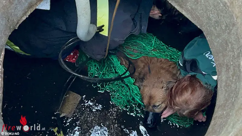 PÖCHLARN (NÖ): Am Morgen des 19. Dezember 2024 wurden die Feuerwehren Ornding und Pöchlarn zu einer besonderen Mission gerufen: Ein Hund namens Choco war in einen etwa 4 Meter tiefen Brunnenschacht gefallen.