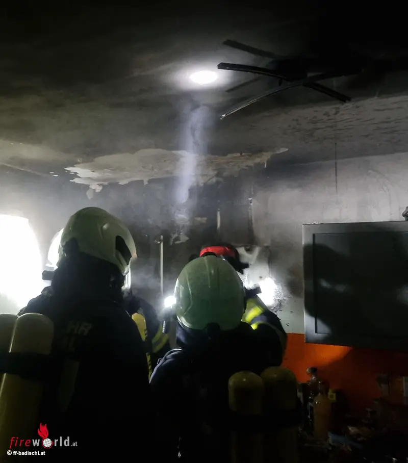 Der Hausbesitzer reagierte geistesgegenwärtig und begann mittels vorhandenen Feuerlöschern den Brand zu bekämpfen. Ein daneben wohnender Nachbar, welcher gerade seinen Kaffee zu sich nehmen wollte, eilte ebenfalls zu Hilfe. Die Rettungskräfte wurden sofort zu Hilfe gerufen. Die OÖ Landeswarnzentrale, welche den Hilferuf entgegennahm, veranlasste die Alarmierung der Hauptfeuerwache Bad Ischl, der Freiwilligen Feuerwehr Pfandl und der Feuerwache Reiterndorf. Auf Grund der Tatsache, dass es sich um ein altes Gebäude mit Holzdecke handelte und die geringe Anzahl an zur Verfügung stehenden Kräfte während der Arbeitstage, wurde die Feuerwache Perneck nachalarmiert.