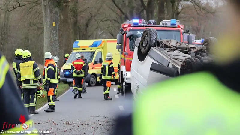 HEMSLINGEN (DEUTSCHLAND): Um 15:45 Uhr des 24. Dezember 2024 wurde die Ortsfeuerwehr Hemslingen-Söhlingen zu einem Verkehrsunfall mit eingeklemmten Personen alarmiert. Aufgrund der schwere des Unfalls wurden parallel weitere Einsatzkräfte aus Westervesede, Scheeßel und Schneverdingen alarmiert.