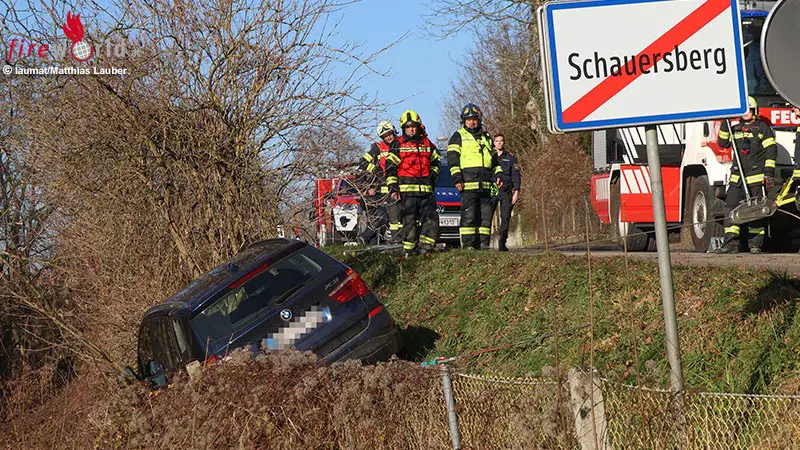 Oö: Einsatzkräfte halfen Beifahrerin beim Aussteigen aus Unfallfahrzeug in Böschung