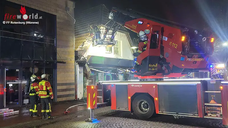ROTENBURG / WÜMME (DEUTSCHLAND): Am Abend des 28. Dezember 2024 kam es an einem Dach eines Gebäudes in der Rotenburger Innenstadt zu einem Brand. Um kurz vor Mitternacht wurden die Feuerwehren aus Rotenburg und Wohlsdorf mit dem Stichwort „Feuer 2“ und dem Zusatz „brennendes Geschäft“ in die Große Straße alarmiert.