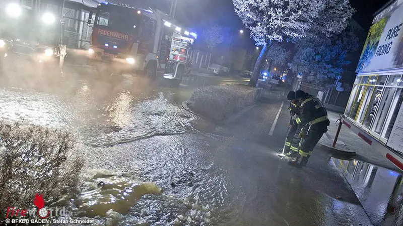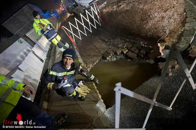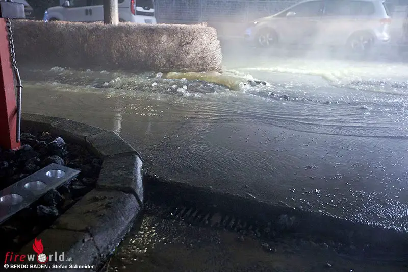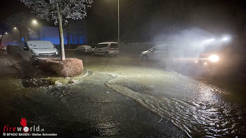 In Baden rückte die Feuerwehr kurz vor 2 Uhr zu einem Erkundungseinsatz im Ortsteil Weikersdorf aus. Wie es sich dann herausstellte kam es in der Vöslauerstraße zu einem Rohrleitungsbruch einer 200er Hauptwasserleitung im Gehsteigbereich.