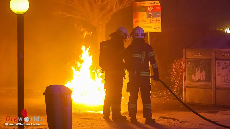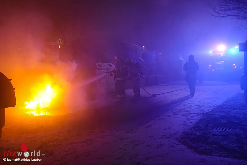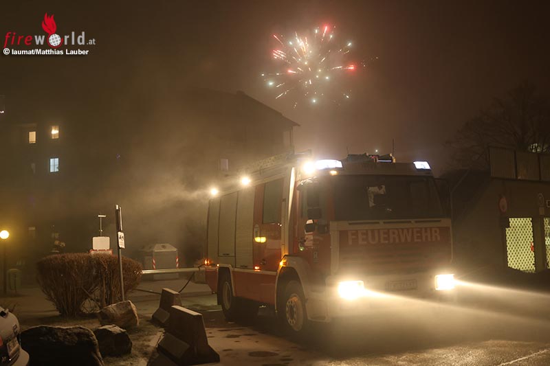 Punkt Mitternacht löschte die Feuerwehr in Wels-Neustadt dann einen Brand bei einer Müllsammelstelle. Dabei kam es kurzzeitig zu einem größeren Polizeieinsatz. Wenige Meter neben dem Löscheinsatz wurde eine Feuerwerksbatterie nach der anderen gezündet.