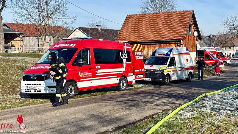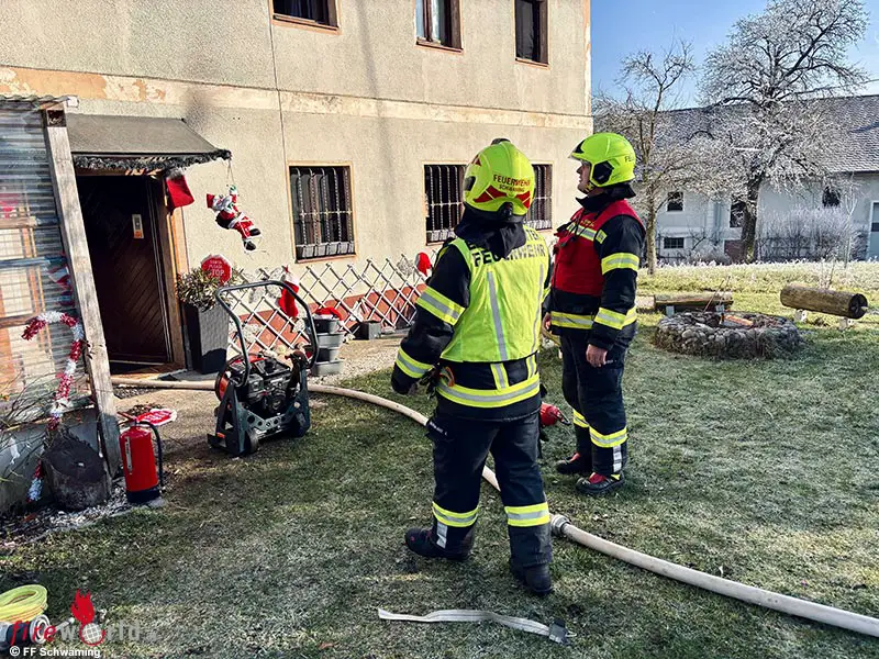 GARSTEN | SCHWAMING (OÖ): Am Mittwoch, den 1. Jänner 2025, wurde die FF Schwaming gemeinsam mit der FF Garsten um 10:59 Uhr zu einem vermeintlichen Kaminbrand in Schwaming alarmiert. Nach dem raschen Eintreffen der Einsatzkräfte erfuhr der Einsatzleiter der FF Schwaming von der Bewohnerin, dass sie einen Einsturz des Kamins vermutet und sich ihr Hund noch im 1. Obergeschoss im Schlafzimmer befindet.