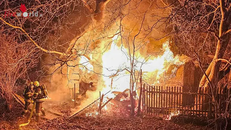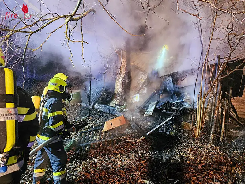 LEOBEN (STMK): Auch in der Silvesternacht 2024 / 2025 mussten die Leobener Feuerwehren zu Einsätzen ausrücken. Noch im alten Jahr wurden sie zu einem Mistkübelbrand am Obritzfeldweg alarmiert. Dieser entwickelte sich allerdings zu einem Vollbrand einer Gartenhütte, der mit zwei C-Rohren bekämpft wurde.