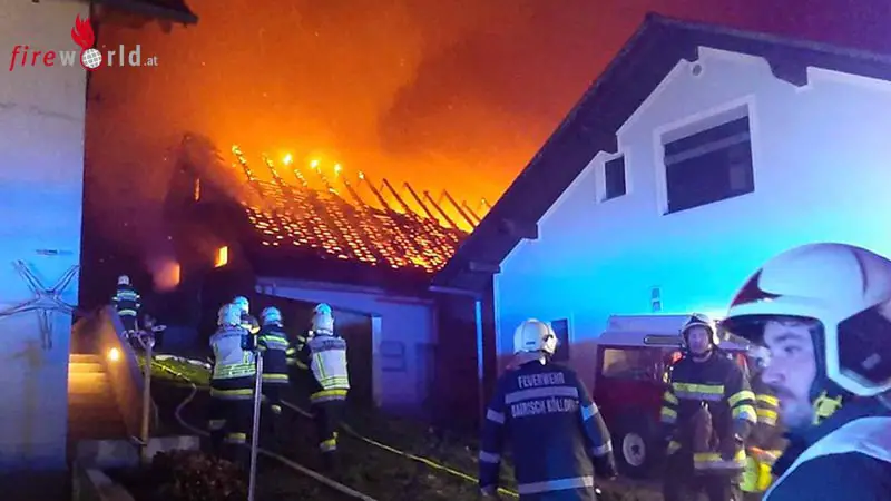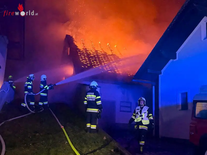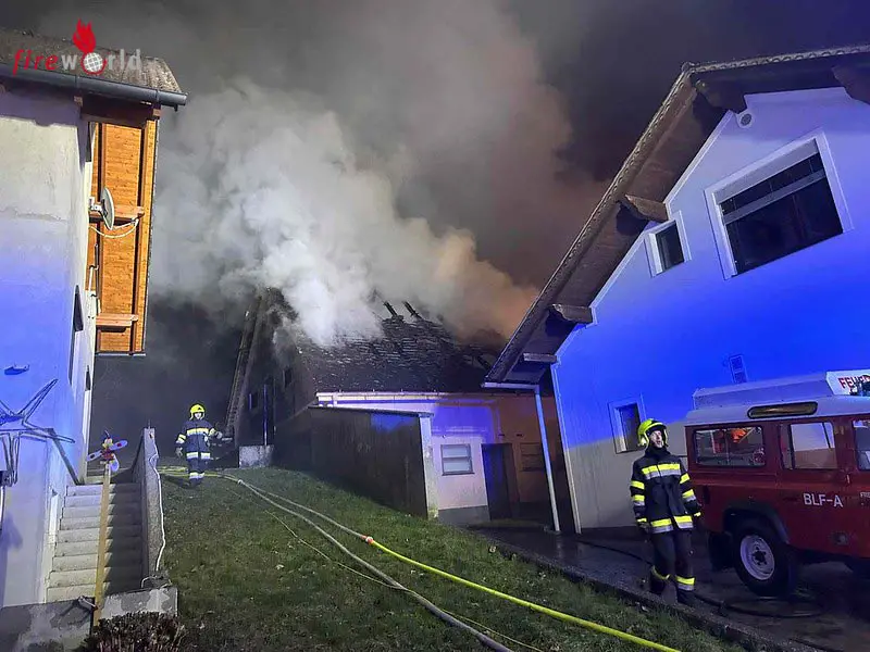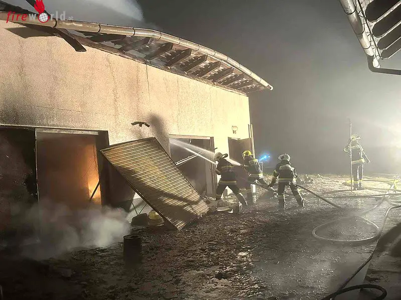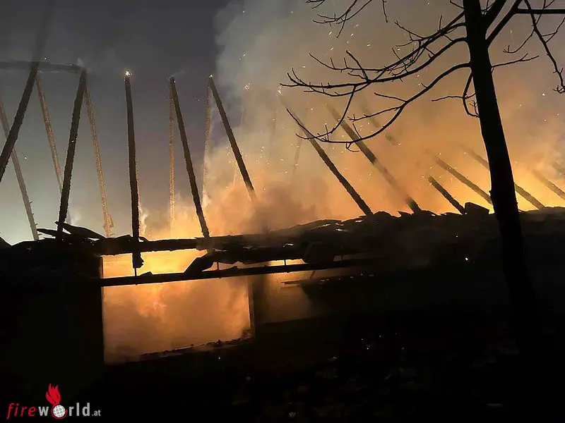 BAD GLEICHENBERG (STMK): Aus bisher noch unbekannter Ursache geriet am Silvesterabend, 31. Dezember 2024, ein Wirtschaftsgebäude in der Gemeinde Bad Gleichenberg im Ortsteil Bairisch Kölldorf in Brand. Viele der 90 Kameradinnen und Kameraden wurden von diversen Silvesterfeiern zum Einsatz alarmiert.