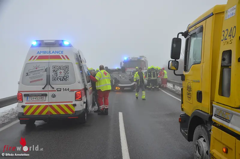 Nö: Überschlagender Pkw kollidiert in Amstetten mit Gegenverkehr