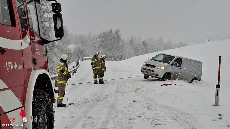 Thomatal: Gleich zwei Einsätze beschäftigten die Feuerwehr Thomatal: Um 13:48 Uhr wurde ein Kleintransporter auf der L225 (Thomataler Landesstraße) geborgen. Der Transporter war auf schneebedeckter Fahrbahn von der Straße abgekommen und im Straßenbankett liegen geblieben. Die Bergung erfolgte mit der Einbauseilwinde. Nach 40 Minuten war der Einsatz erfolgreich abgeschlossen.