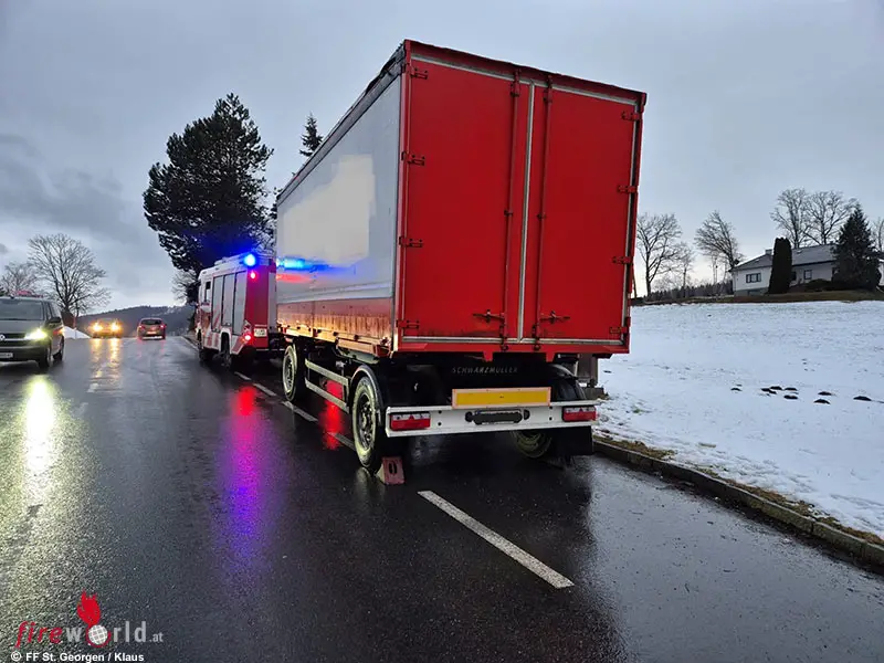 Ein Lkw-Fahrer hatte in St. Georgen/Klaus (Waidhofen an der Ybbs) auf dem Schotterplatz auf der Wieserhöhe eine Pause eingelegt. Beim Versuch, wieder loszufahren, rutschte der Anhänger ab und blockierte schließlich die Fahrbahn, wodurch eine Gefahr für den Verkehr entstand. Um die Verkehrssicherheit wieder herzustellen, schleppte die FF St. Georgen/Klaus den Anhänger ab.