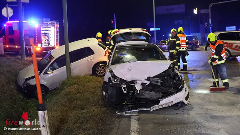 THALHEIM BEI WELS (OÖ): Drei Verletzte forderte Samstagabend, 25. Jänner 2025, ein heftiger Kreuzungscrash zwischen zwei Pkw auf der B138 Pyhrnpass Straße in Thalheim bei Wels (Bezirk Wels-Land). Wenig später krachte es dann nochmal.