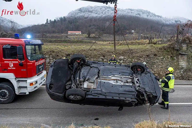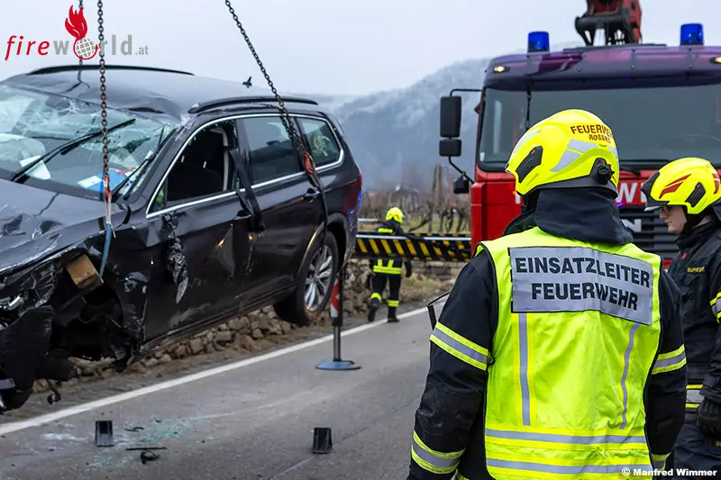 Die Feuerwehr Rossatz wurde von der Bezirksalarmzentrale Krems zur Fahrzeugbergung alarmiert. Am Einsatzort angekommen wurde die Unfallstelle abgesichert und ein Brandschutz errichtet. Der Fahrzeuglenker wurde von Sanitätern des Roten Kreuz versorgt und mit Verletzungen unbestimmten Grades in das Universitätsklinikum Krems transportiert,
